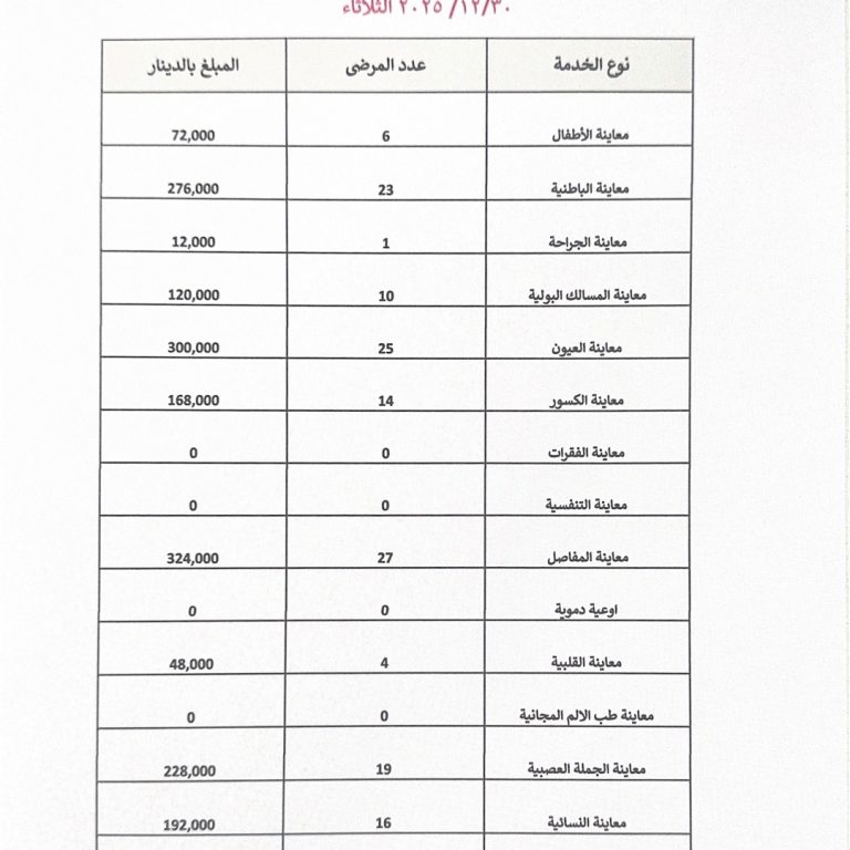 يواصل مستشفى الإمام الحجة (عج) الخيري تقديم خدماته الطبية المجانية والإنسانية بشكل منتظم، حيث تُقدَّم المعاينات المجانية كل يوم ثلاثاء على مدار العام منذ عام