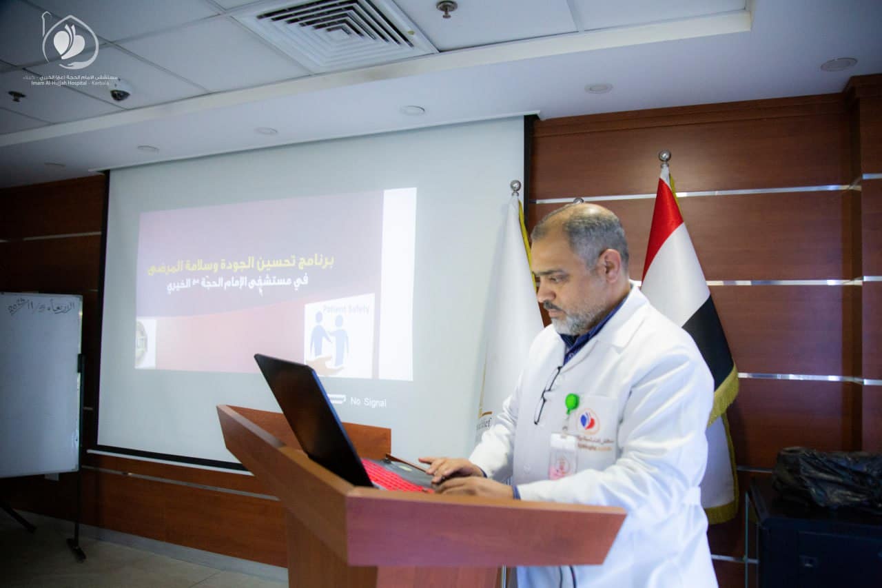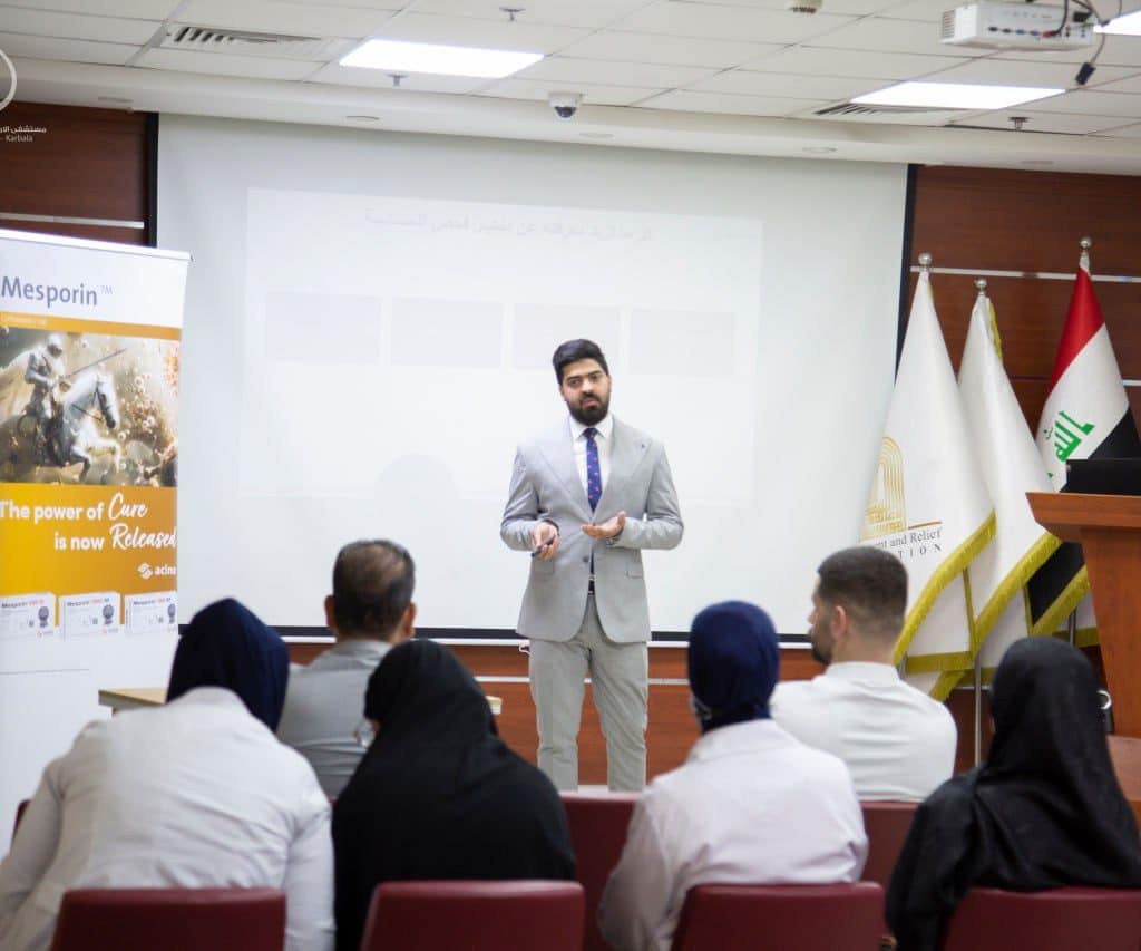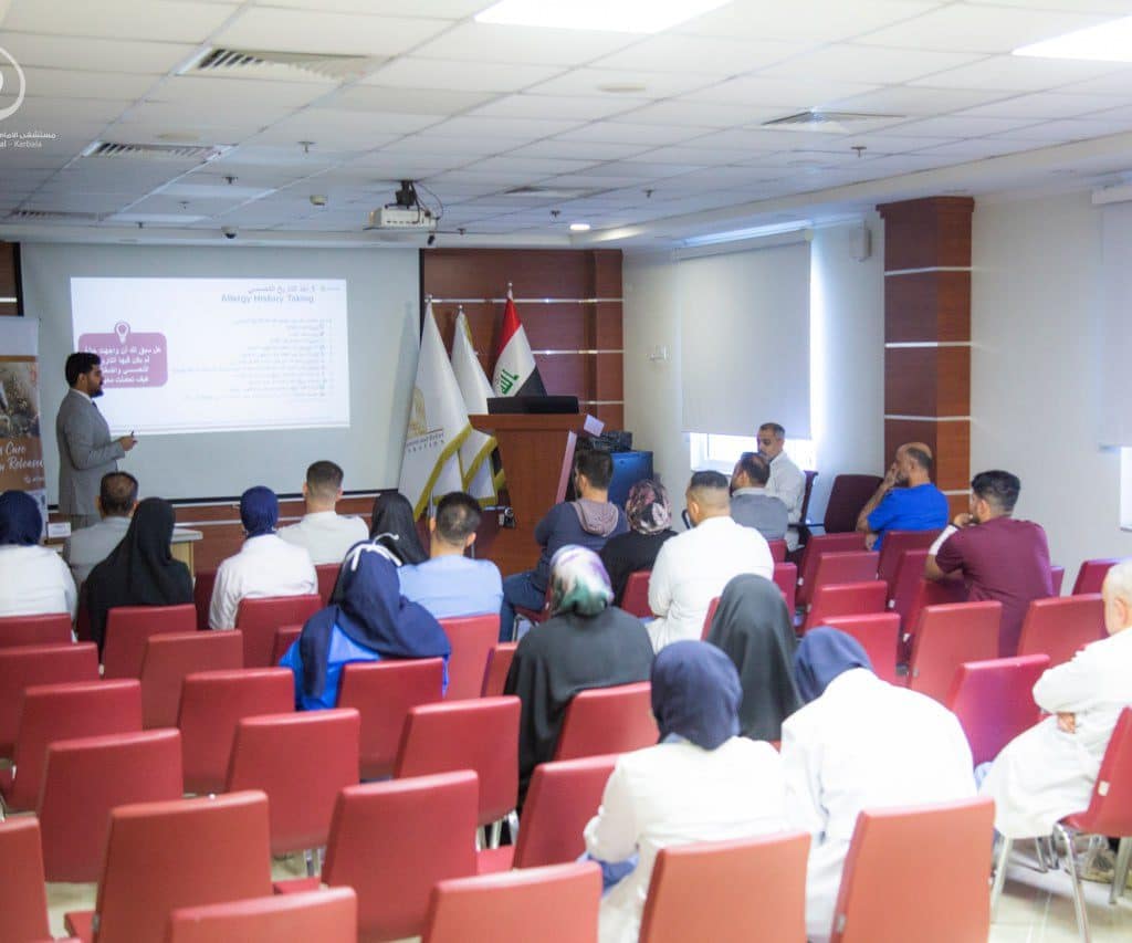 استعرض الأستاذ علي خلال الجلسة محاور مهمة تتعلق بـ الاستخدام الرشيد للمضادات الحيوية ودور الكادر التمريضي المحوري في ضمان إعطائها بصورة آمنة ودقيقة، مؤكدًا أهمية الالتزام بـ التوصيات الستة للمصححات 6 Rights عند إعطاء الأدوية، بوصفها الأساس في تحقيق سلامة المرضى والحد من الأخطاء الدوائية.
