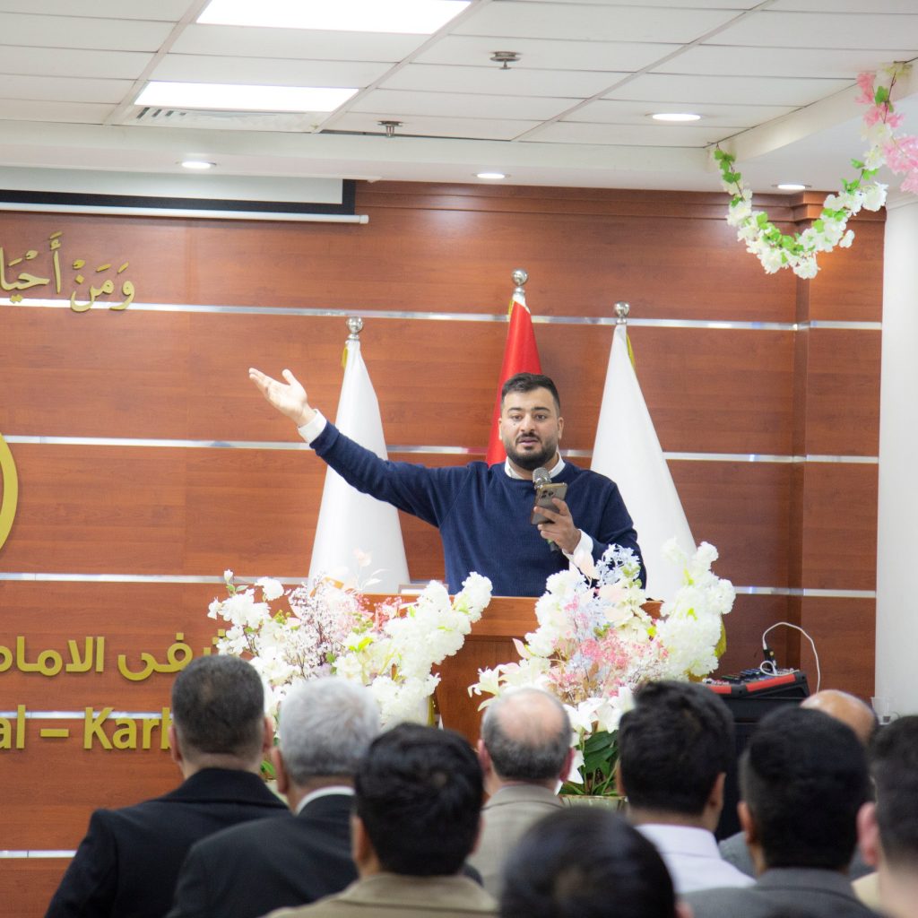 واستُهلت فقرات الحفل بتلاوةٍ مباركة من آيات الذكر الحكيم، تلاها القارئ منتظر الشمري، أضفت على المناسبة أجواءً إيمانيةً مهيبة، أعقبتها محاضرة دينية ألقاها فضيلة الشيخ الدكتور علي حسن منيع، تناول فيها محطاتٍ مضيئة من السيرة العطرة لأمير المؤمنين (عليه السلام)، مسلطًا الضوء على نهجه في العدالة والإنسانية، وما تمثّله شخصيته من نموذجٍ خالد في خدمة المجتمع وترسيخ القيم.