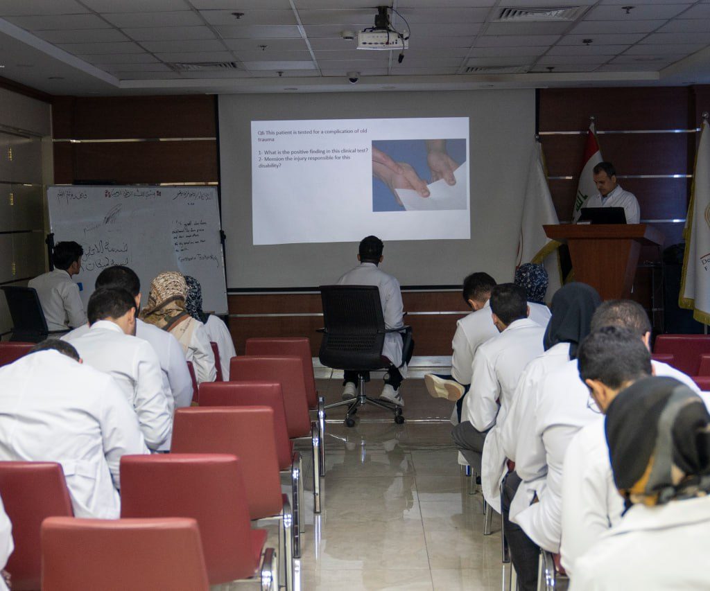 وشارك في الإشراف وإجراء الامتحان كلٌّ من الدكتور عبد الكريم قاسم، والدكتور مرتضى أديب (استشاري جراحة العظام والكسور من الهند)، والدكتور علي طارق، والدكتور كرار، إلى جانب مدير القسم التمريضي في المستشفى الأستاذ علي راضي، حيث جرى الامتحان وفق معايير علمية دقيقة هدفت إلى تقييم المستوى العلمي والسريري للطلبة، وتعزيز مهاراتهم الأكاديمية والتطبيقية بما ينسجم مع متطلبات التعليم الطبي الحديث.