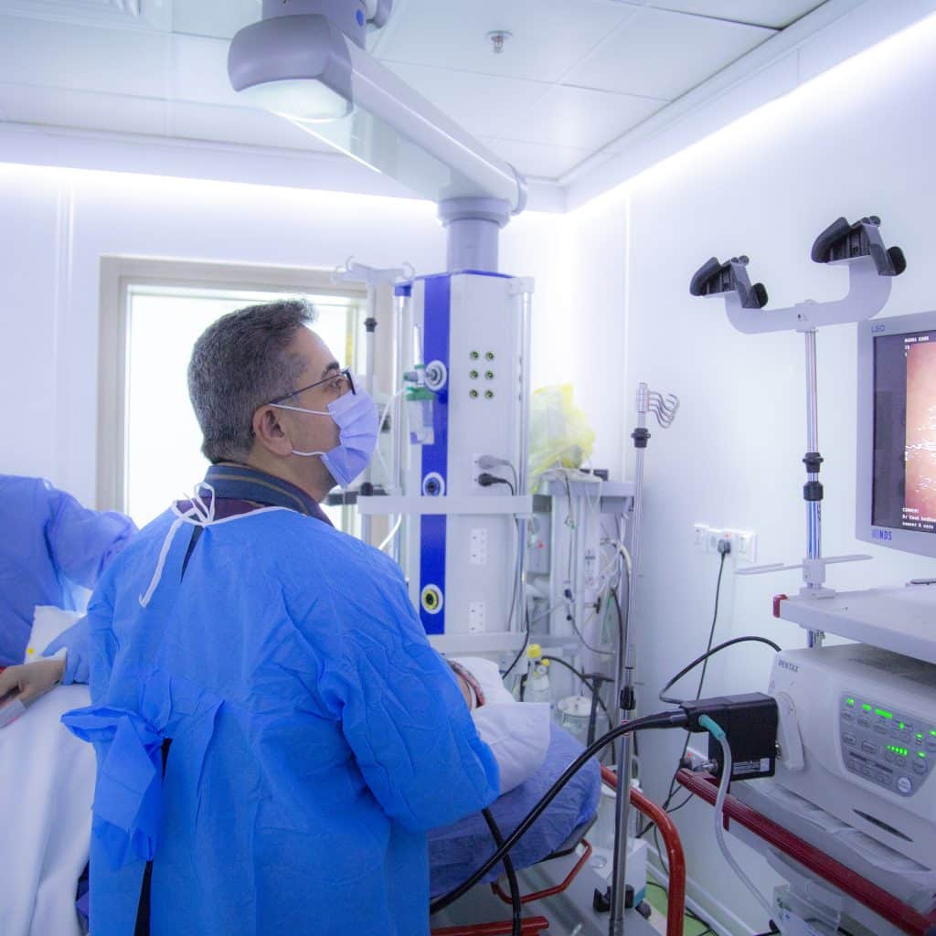 - إجراء عمليات تنظير المعدة والقولون، معالجة نزف الجهاز الهضمي، ورفع الزوائد اللحمية بواسطة الناظور.
