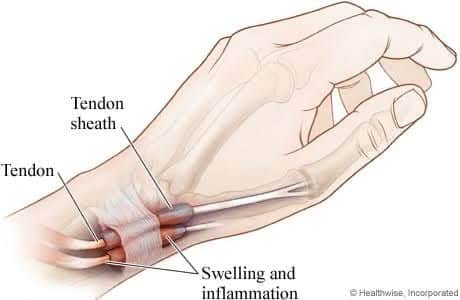 يحدث الالتهاب عندما تلتهب الأغمدة (الأغلفة) المحيطة بالأوتار، مما يؤدي إلى تضيّق المسار الذي تمر من خلاله هذه الأوتار، فينتج عن ذلك ألم، وتورم، وتقييد في الحركة.