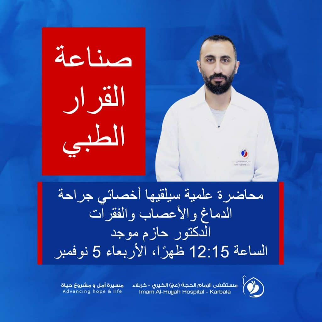 دعوة عامة: محاضرة علمية حول “صناعة القرار الطبي” في مستشفى الإمام الحجة (عج) الخيري